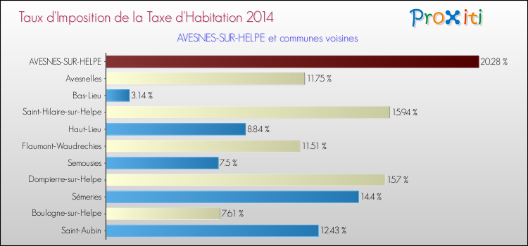 Pendant la même période, les communes françaises similaires à Avesnes-sur-Helpe, ont vu leur taux de taxe d'habitation augmenter de 22.71 % en moyenne entre 2000 et 2014.