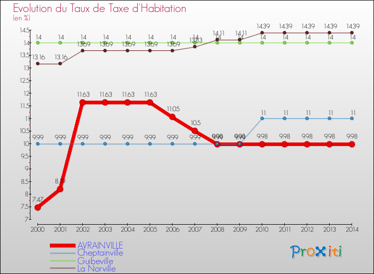 En 2014, le taux de la taxe d'habitation vôté par le conseil municipal de Avrainville était de : 9.98 %.