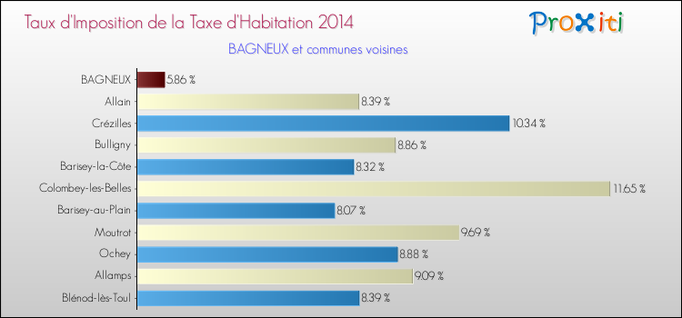 En 2014, le taux de la taxe d'habitation vôté par le conseil municipal de Bagneux était de : 5.86 %.