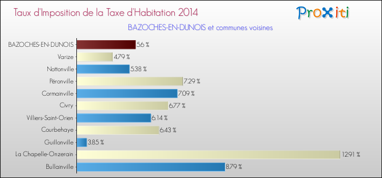 En 2014, le taux de la taxe d'habitation vôté par le conseil municipal de Bazoches-en-Dunois était de : 5.6 %.