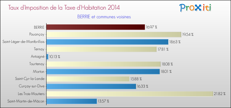 Vous trouverez ci-dessous des graphiques qui vous permettent de situer le taux de la taxe d'habitation de Berrie par rapport aux communes voisines.