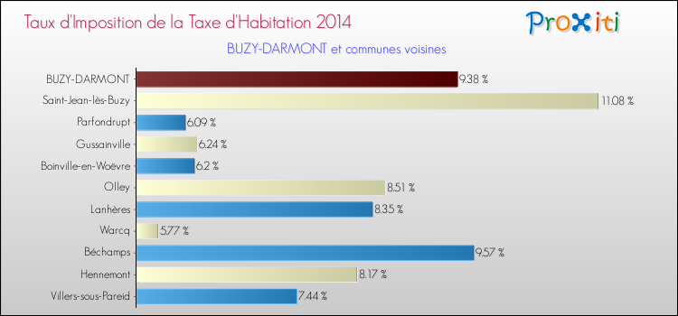 Vous trouverez ci-dessous des graphiques qui vous permettent de situer le taux de la taxe d'habitation de Buzy-Darmont par rapport aux communes voisines.