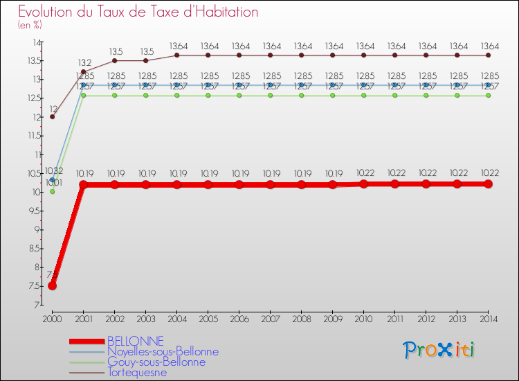 A Bellonne, le taux de taxe d'habitation a ainsi augmenté de 36.27 % entre 2000 et 2014.