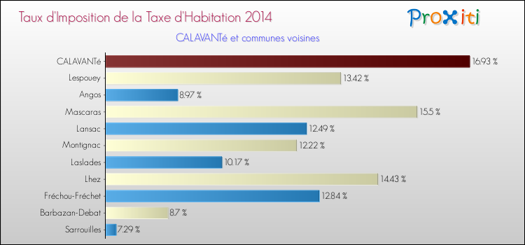 Vous trouverez ci-dessous des graphiques qui vous permettent de situer le taux de la taxe d'habitation de Calavanté par rapport aux communes voisines.