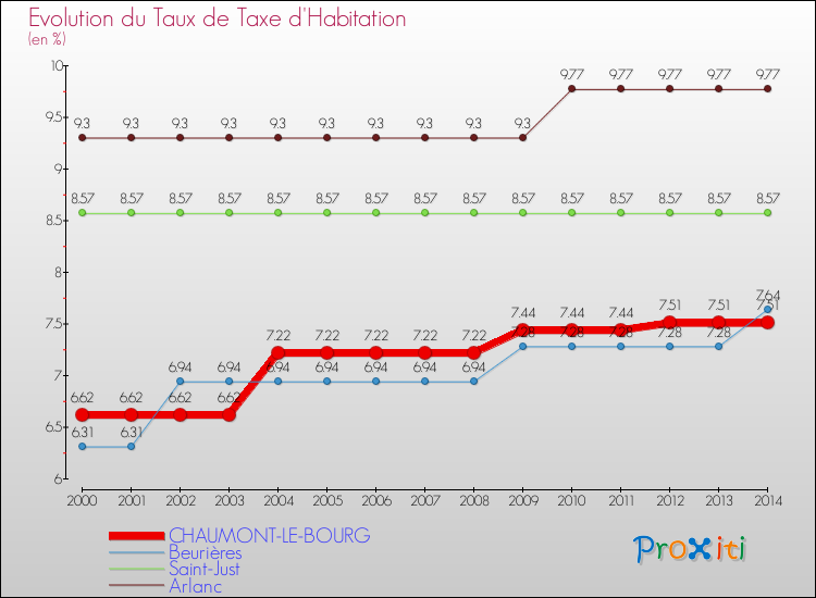 A Chaumont-le-Bourg, le taux de taxe d'habitation a ainsi augmenté de 13.44 % entre 2000 et 2014.