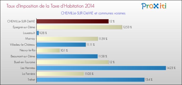 En 2014, le taux de la taxe d'habitation vôté par le conseil municipal de Chemillé-sur-Dême était de : 12 %.