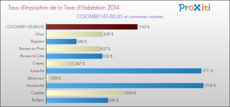 En 2014, le taux de la taxe d'habitation vôté par le conseil municipal de Colombey-les-Belles était de : 11.65 %.