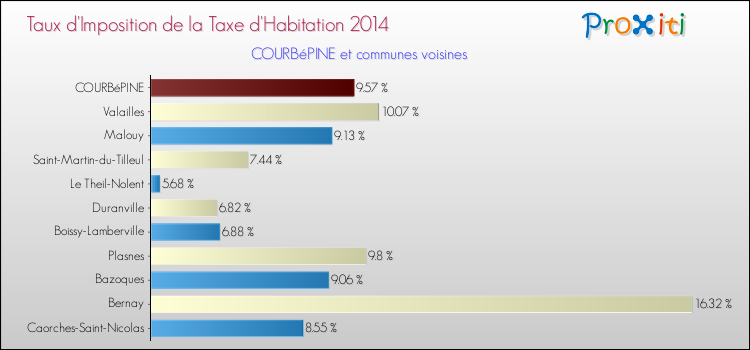 Vous trouverez ci-dessous des graphiques qui vous permettent de situer le taux de la taxe d'habitation de Courbépine par rapport aux communes voisines.