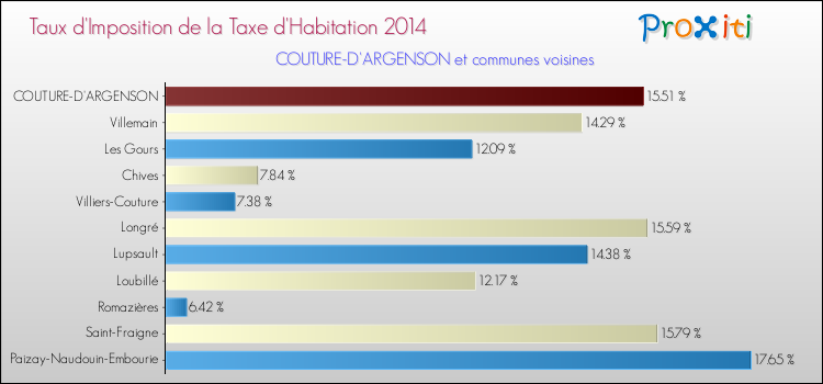 En 2014, le taux de la taxe d'habitation vôté par le conseil municipal de Couture-d'Argenson était de : 15.51 %.