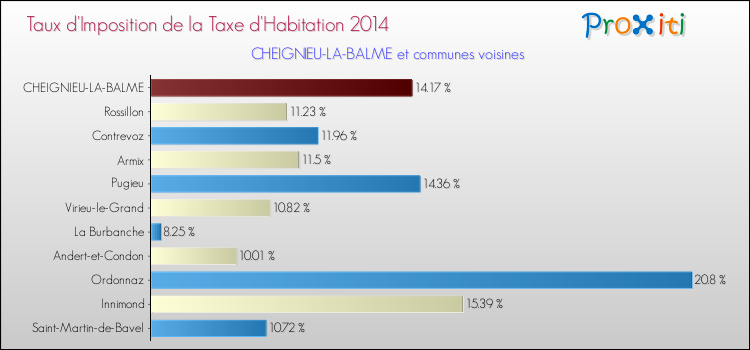 En 2014, le taux de la taxe d'habitation vôté par le conseil municipal de Cheignieu-la-Balme était de : 14.17 %.