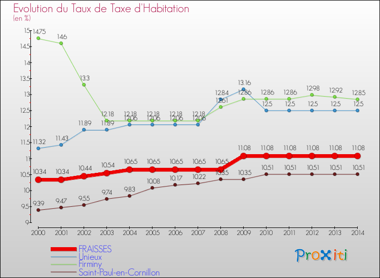 A Fraisses, le taux de taxe d'habitation a ainsi augmenté de 7.16 % entre 2000 et 2014.