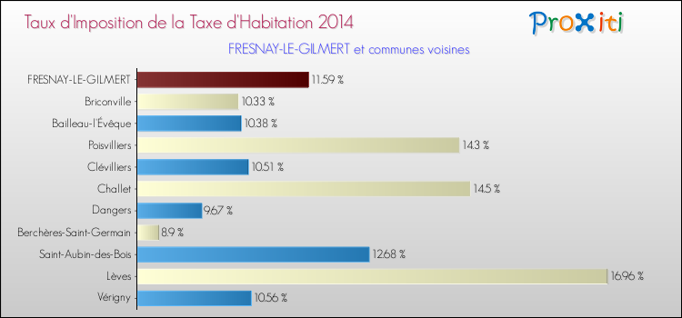En 2014, le taux de la taxe d'habitation vôté par le conseil municipal de Fresnay-le-Gilmert était de : 11.59 %.
