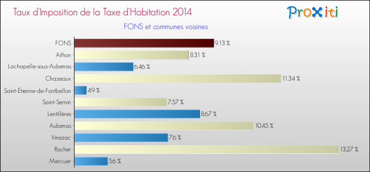 Vous trouverez ci-dessous des graphiques qui vous permettent de situer le taux de la taxe d'habitation de Fons par rapport aux communes voisines.