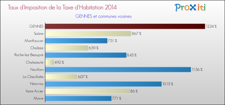 En 2014, le taux de la taxe d'habitation vôté par le conseil municipal de Gennes était de : 12.24 %.