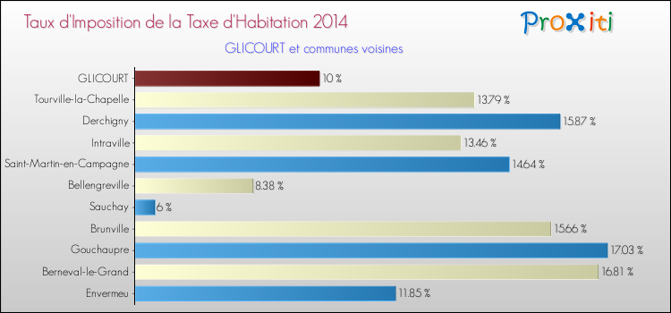 En 2014, le taux de la taxe d'habitation vôté par le conseil municipal de Glicourt était de : 10 %.