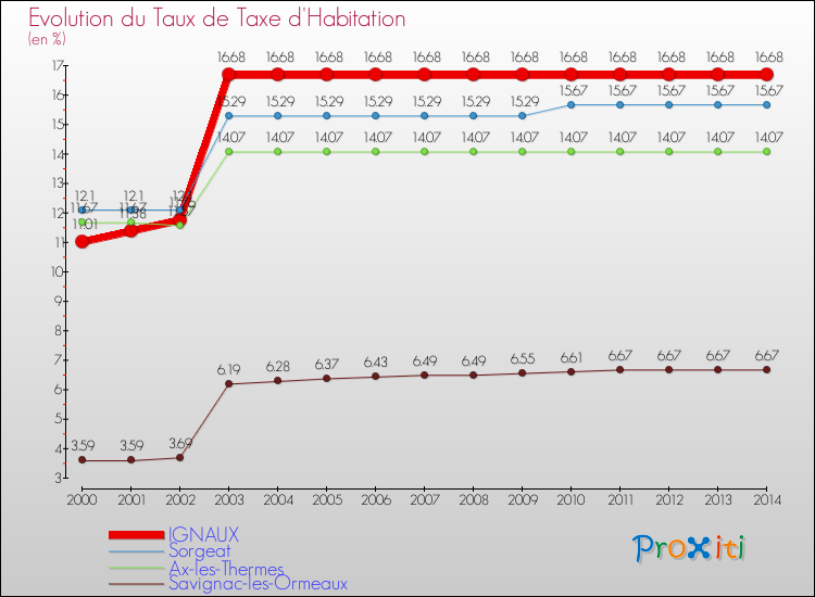 A Ignaux, le taux de taxe d'habitation a ainsi augmenté de 51.5 % entre 2000 et 2014.