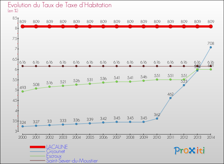 A Lacaune, le taux de taxe d'habitation a ainsi augmenté de 0 % entre 2000 et 2014.