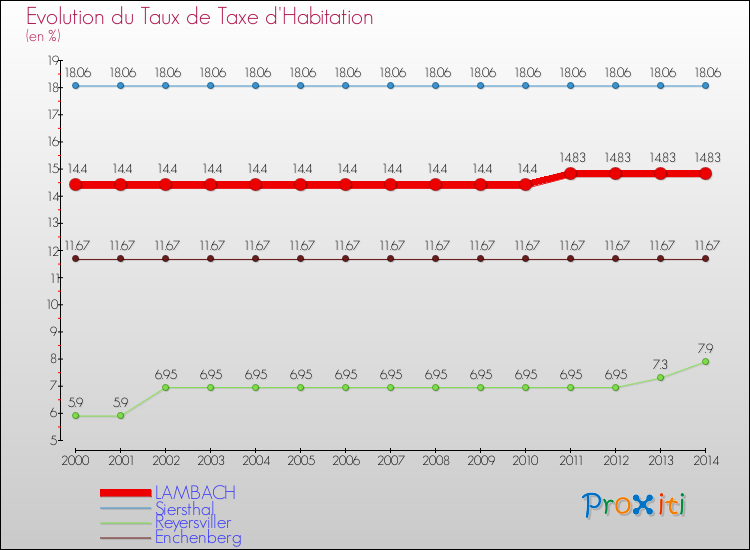 A Lambach, le taux de taxe d'habitation a ainsi augmenté de 2.99 % entre 2000 et 2014.