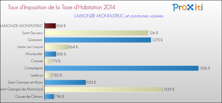 Vous trouverez ci-dessous des graphiques qui vous permettent de situer le taux de la taxe d'habitation de Lamonzie-Montastruc par rapport aux communes voisines.