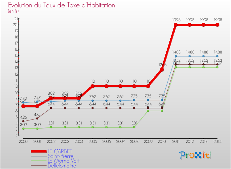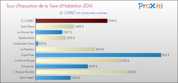 En 2014, le taux de la taxe d'habitation vôté par le conseil municipal de Le Carbet était de : 19.98 %.