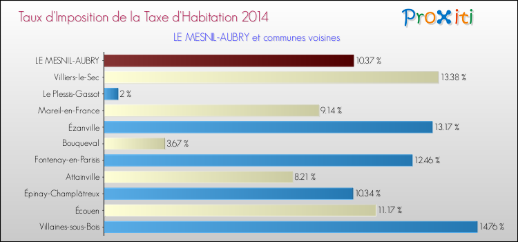 En 2014, le taux de la taxe d'habitation vôté par le conseil municipal de Le Mesnil-Aubry était de : 10.37 %.