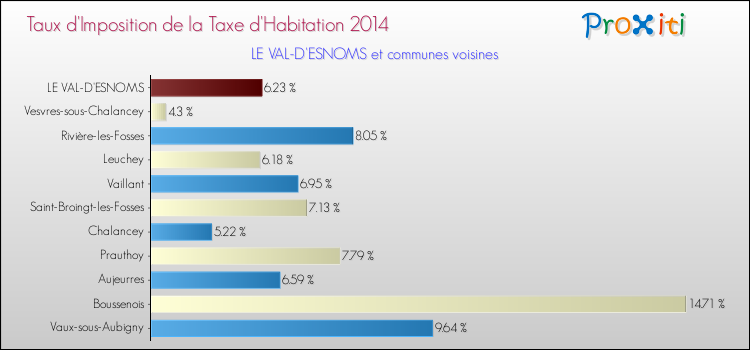 A Le Val-d'Esnoms, le taux de taxe d'habitation a ainsi augmenté de 270.83 % entre 2000 et 2014.