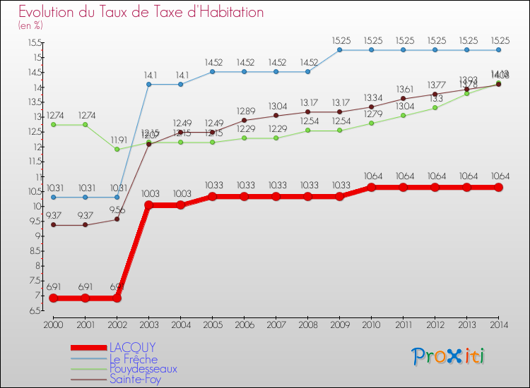 A Lacquy, le taux de taxe d'habitation a ainsi augmenté de 53.98 % entre 2000 et 2014.