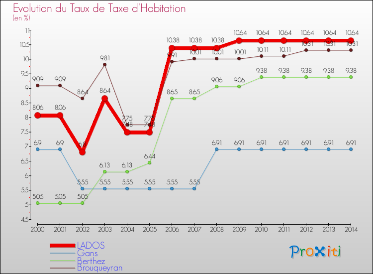 A Lados, le taux de taxe d'habitation a ainsi augmenté de 32.01 % entre 2000 et 2014.