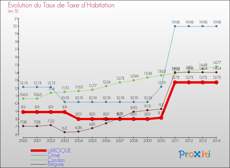 A Laroque, le taux de taxe d'habitation a ainsi augmenté de 43.03 % entre 2000 et 2014.