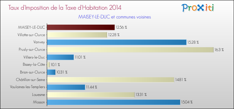 En 2014, le taux de la taxe d'habitation vôté par le conseil municipal de Maisey-le-Duc était de : 12.56 %.
