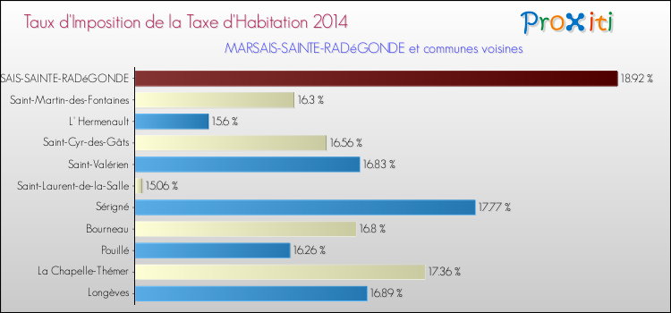 En 2014, le taux de la taxe d'habitation vôté par le conseil municipal de Marsais-Sainte-Radégonde était de : 18.92 %.