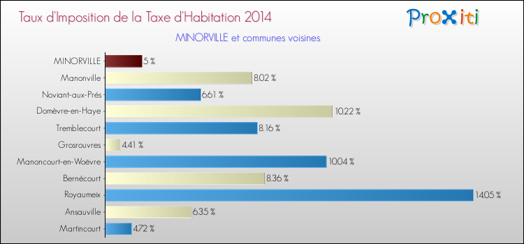 En 2014, le taux de la taxe d'habitation vôté par le conseil municipal de Minorville était de : 5 %.