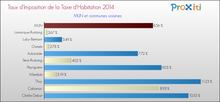 Comparaison des taux d'imposition de la taxe d'habitation 2014 pour MUN et les communes voisines