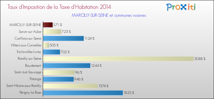 En 2014, le taux de la taxe d'habitation vôté par le conseil municipal de Marcilly-sur-Seine était de : 5.71 %.