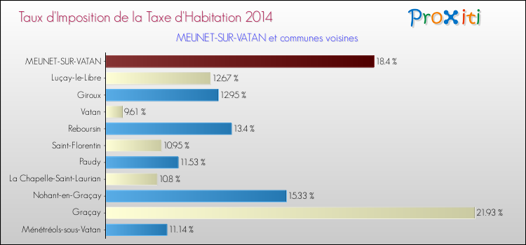 En 2014, le taux de la taxe d'habitation vôté par le conseil municipal de Meunet-sur-Vatan était de : 18.4 %.