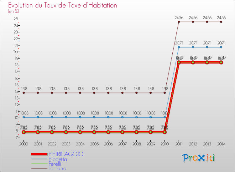 A Pietricaggio, le taux de taxe d'habitation a ainsi augmenté de 134.52 % entre 2000 et 2014.