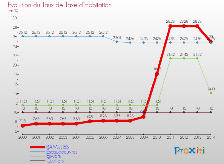 A Ramillies, le taux de taxe d'habitation a ainsi augmenté de 248.19 % entre 2000 et 2014.