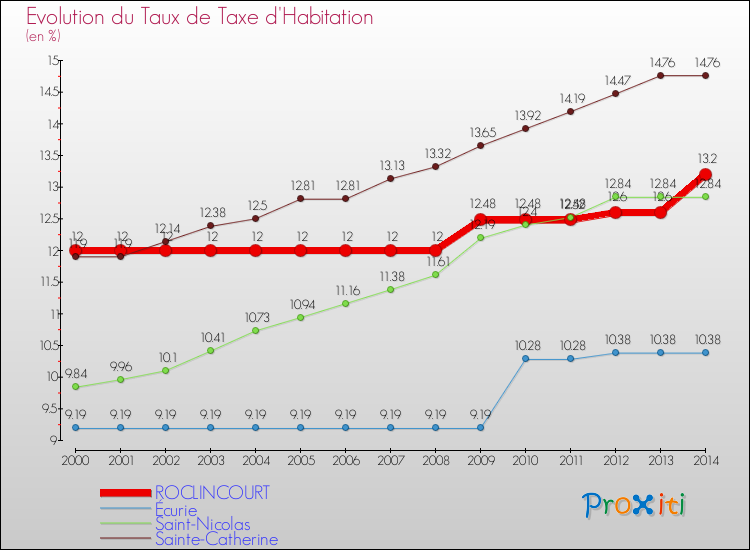 En 2014, le taux de la taxe d'habitation vôté par le conseil municipal de Roclincourt était de : 13.2 %.