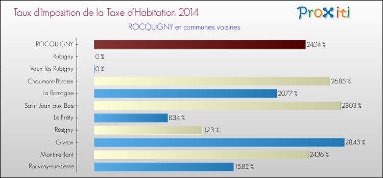 Vous trouverez ci-dessous des graphiques qui vous permettent de situer le taux de la taxe d'habitation de Rocquigny par rapport aux communes voisines.