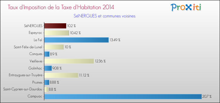 Vous trouverez ci-dessous des graphiques qui vous permettent de situer le taux de la taxe d'habitation de Sénergues par rapport aux communes voisines.