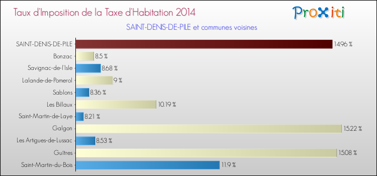 En 2014, le taux de la taxe d'habitation vôté par le conseil municipal de Saint-Denis-de-Pile était de : 14.96 %.