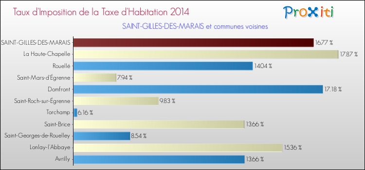 En 2014, le taux de la taxe d'habitation vôté par le conseil municipal de Saint-Gilles-des-Marais était de : 16.77 %.