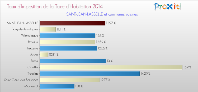 En 2014, le taux de la taxe d'habitation vôté par le conseil municipal de Saint-Jean-Lasseille était de : 12.97 %.