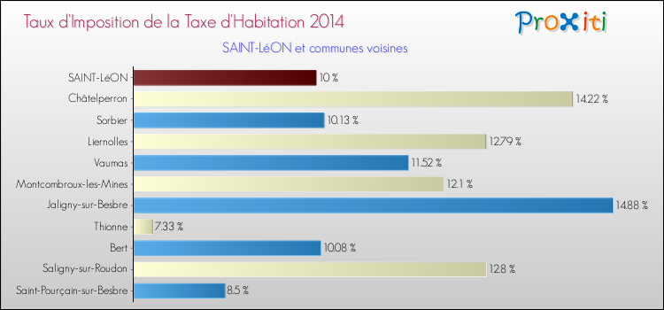 En 2014, le taux de la taxe d'habitation vôté par le conseil municipal de Saint-Léon était de : 10 %.