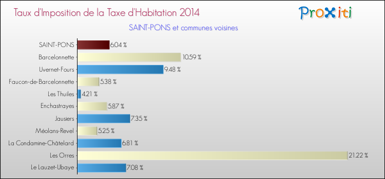 Vous trouverez ci-dessous des graphiques qui vous permettent de situer le taux de la taxe d'habitation de Saint-Pons par rapport aux communes voisines.