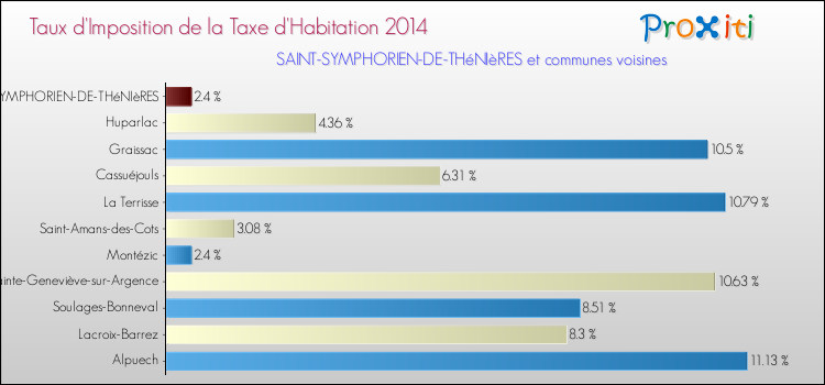 Pendant la même période, les communes françaises similaires à Saint-Symphorien-de-Thénières, ont vu leur taux de taxe d'habitation augmenter de 34.01 % en moyenne entre 2000 et 2014.