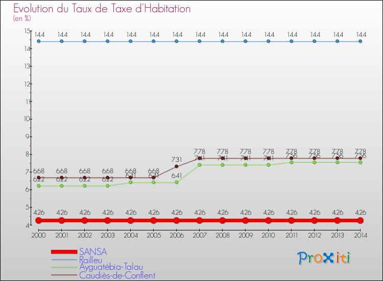 A Sansa, le taux de taxe d'habitation a ainsi augmenté de 0 % entre 2000 et 2014.