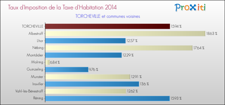 En 2014, le taux de la taxe d'habitation vôté par le conseil municipal de Torcheville était de : 15.94 %.