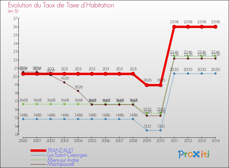 A Tranzault, le taux de taxe d'habitation a ainsi augmenté de 27.98 % entre 2000 et 2014.
